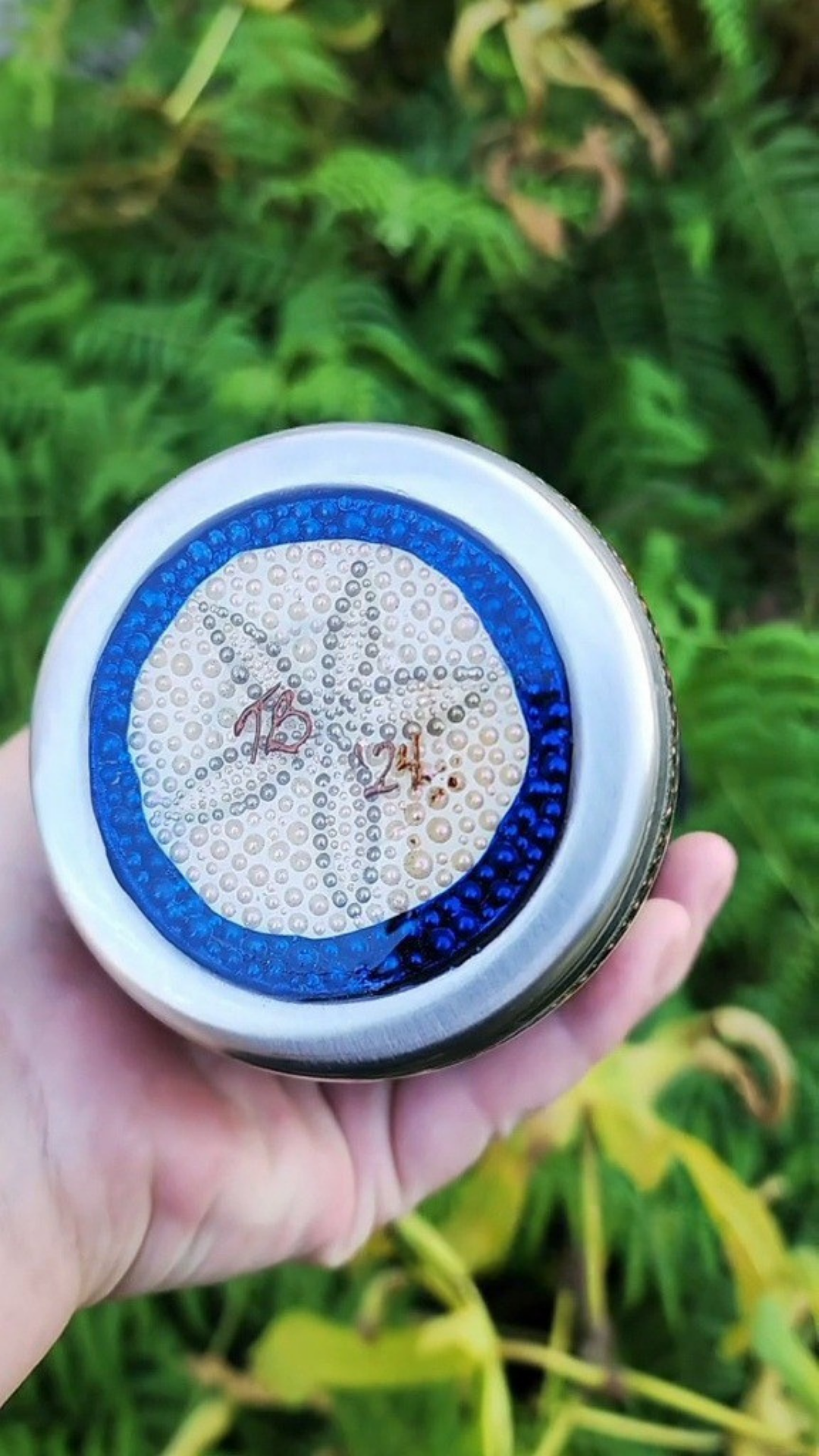 This design from my Twisted Dots collection is inspired by the vibrant world beneath the waves. Each dot is applied individually with a repositionable adhesive, then layered with pigments, glitters, and foils to create luminous texture that shimmers like sunlight under the sea.