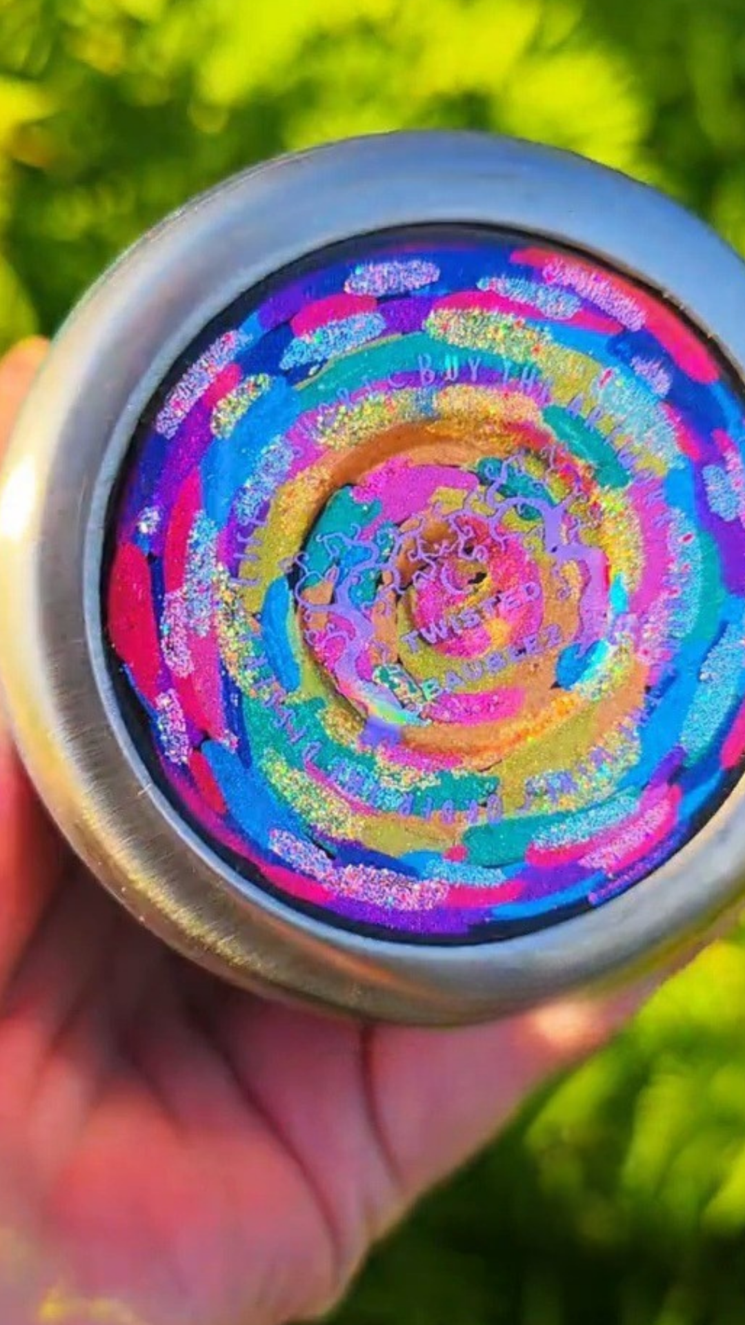 Part of my Twisted Impressions collection, this design is painted in sweeping, post-impressionistic brushstrokes that spiral across the surface with energy and depth. Layers of repositionable glue hold pigments, foils, and glitters that catch the light, creating a swirling motion reminiscent of a living canvas.
