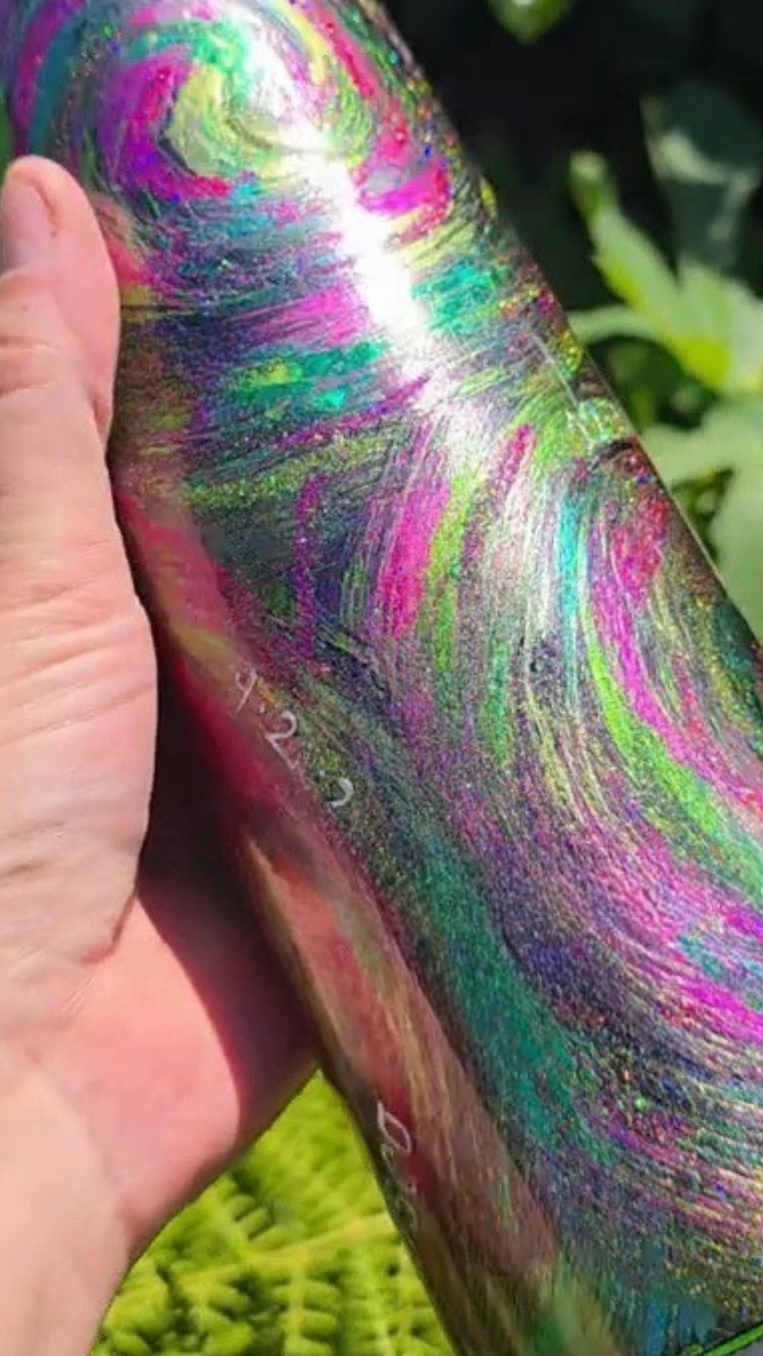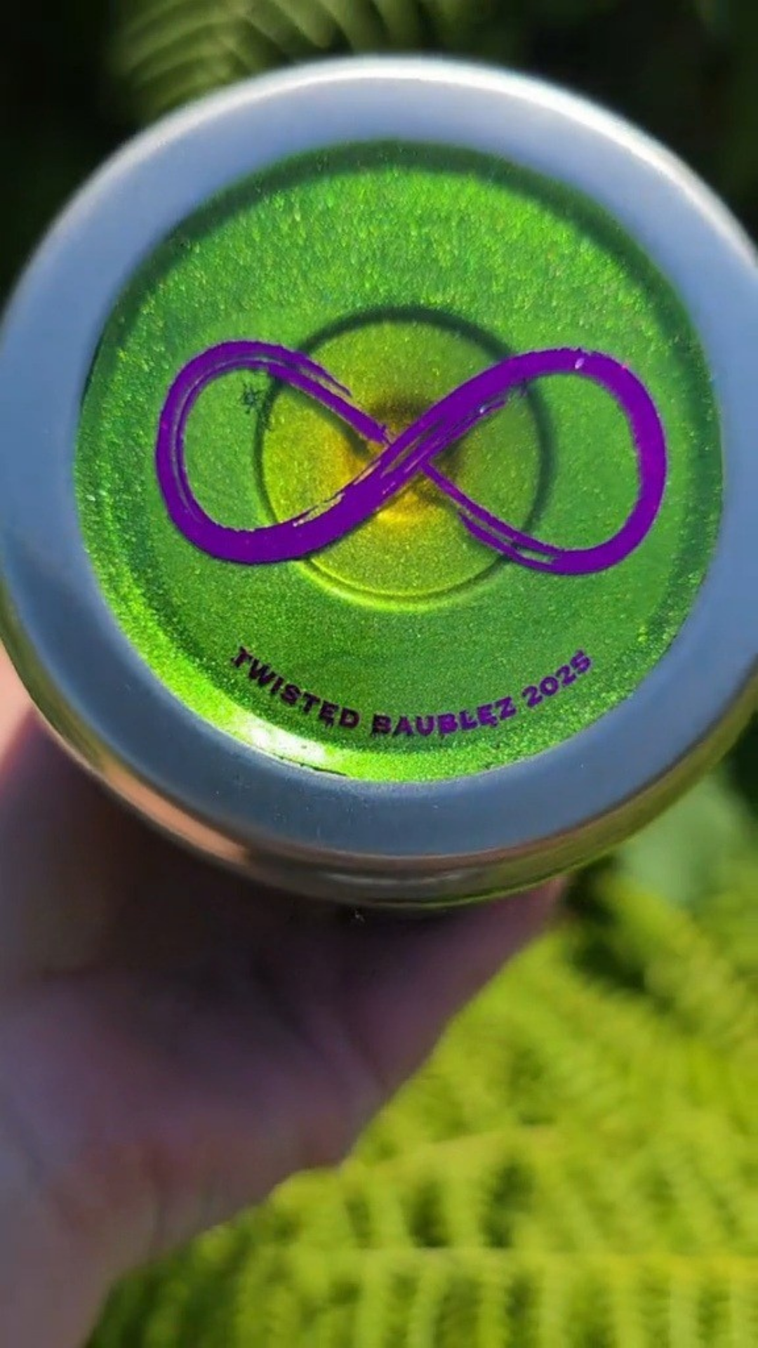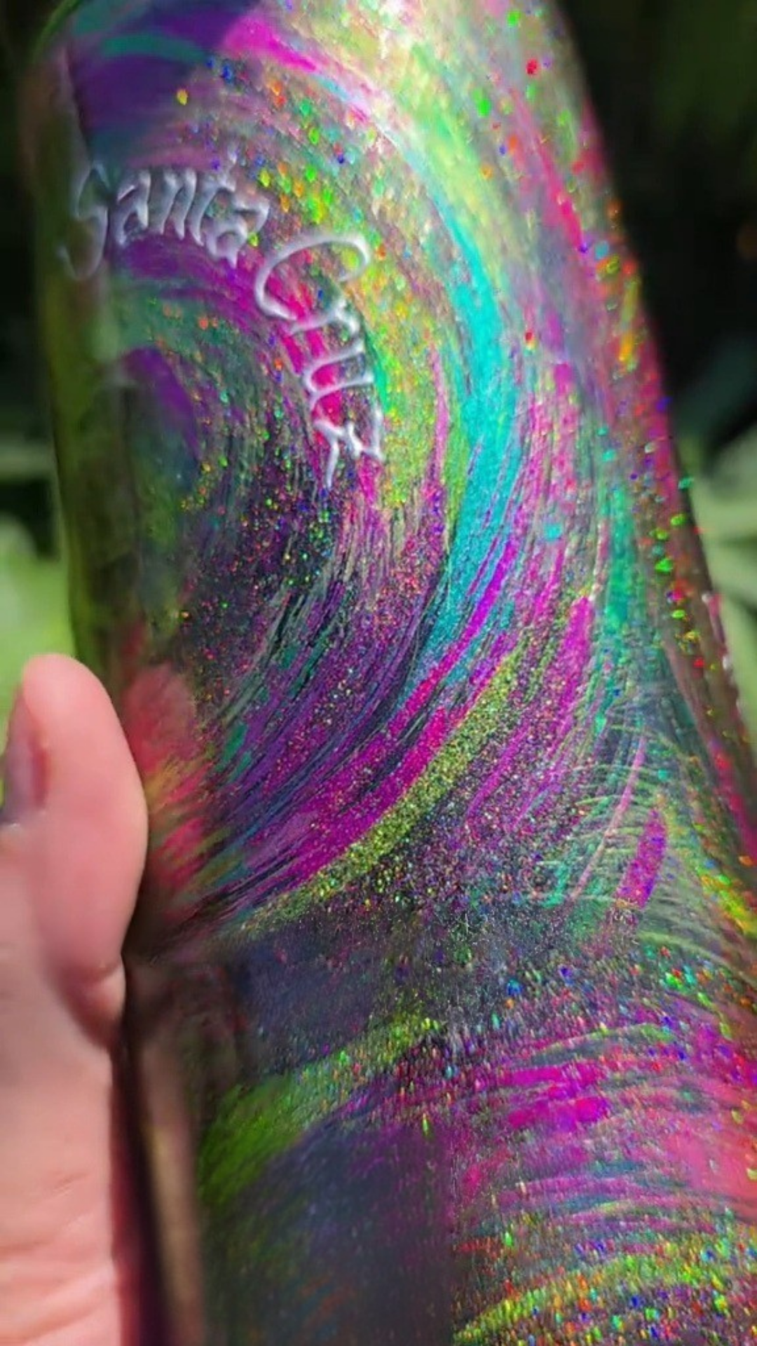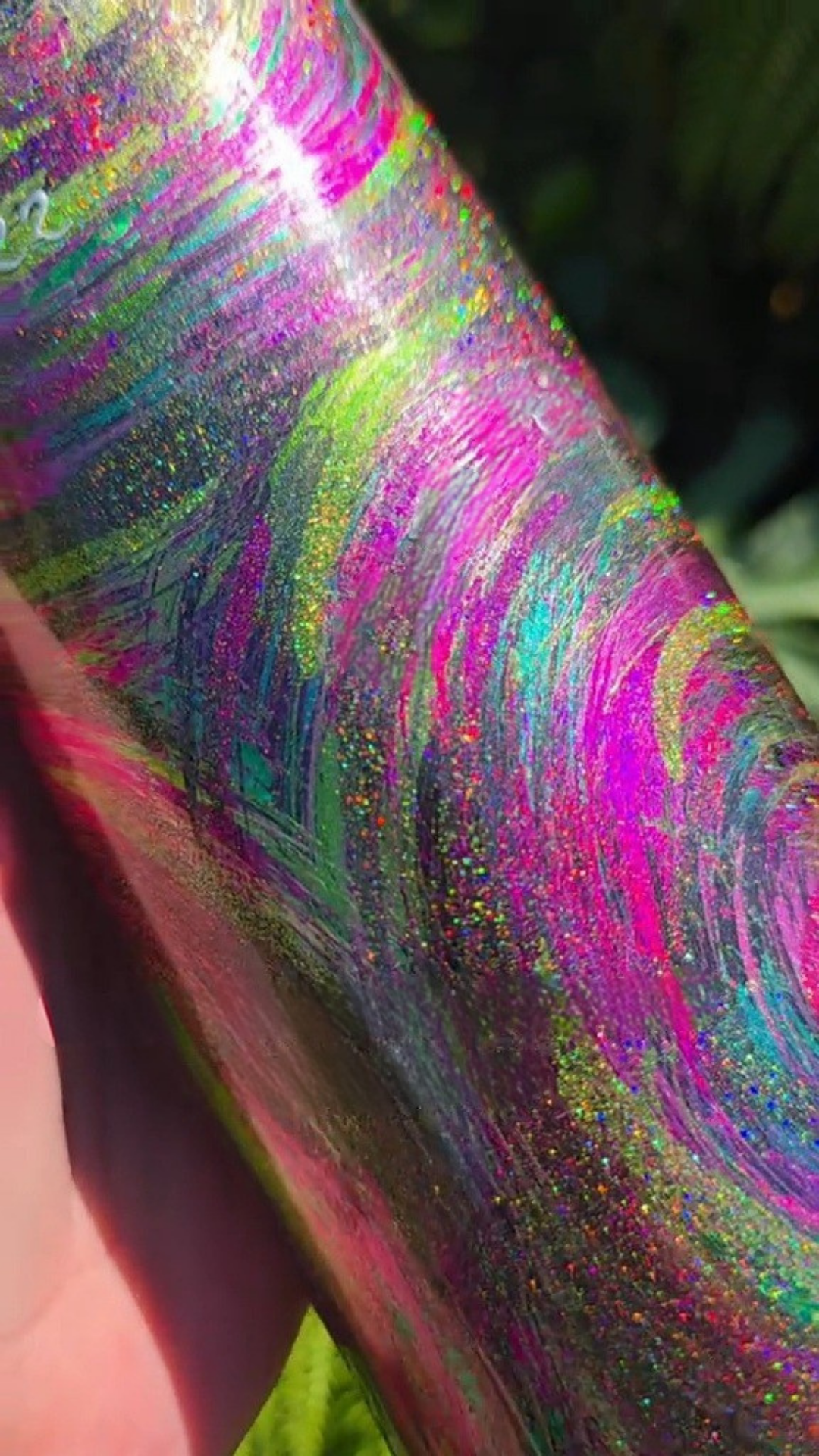 This design from my Twisted Impressions collection features layered pigments, glitters, and foils applied with a chip brush to create a raw, dimensional surface. The textured strokes give the piece a more organic, tactile quality than traditional brushwork, with shimmering highlights that catch the light in unexpected ways.