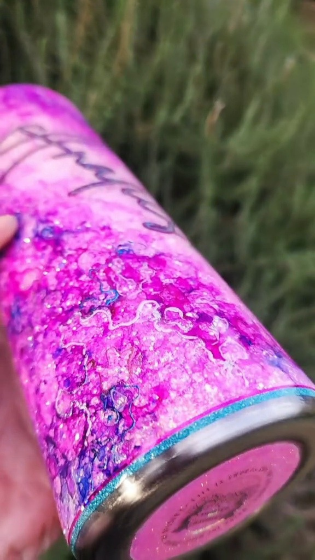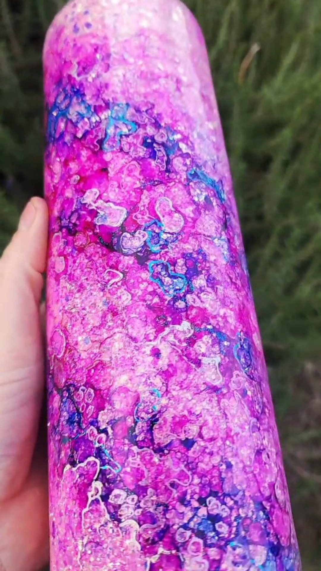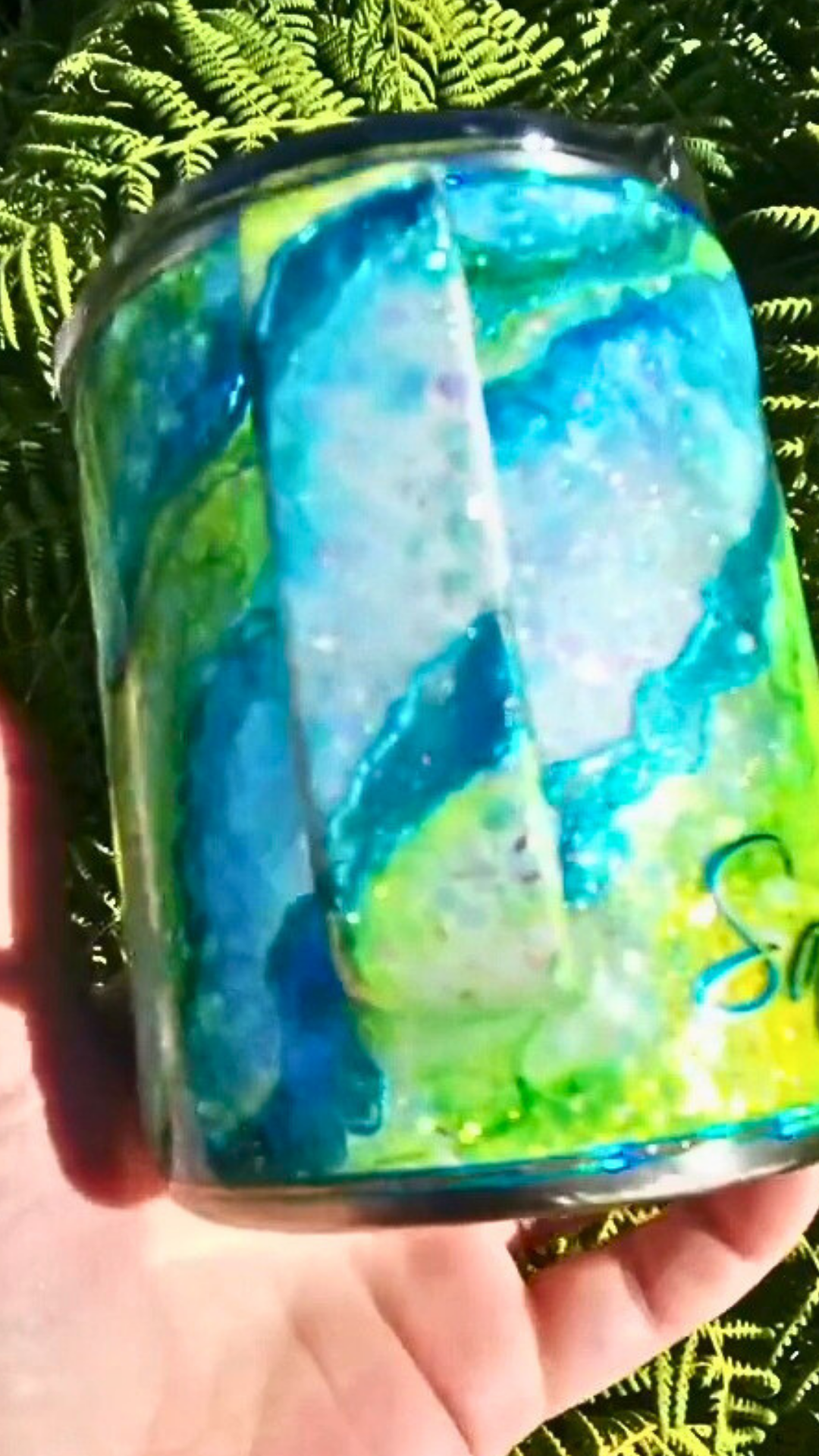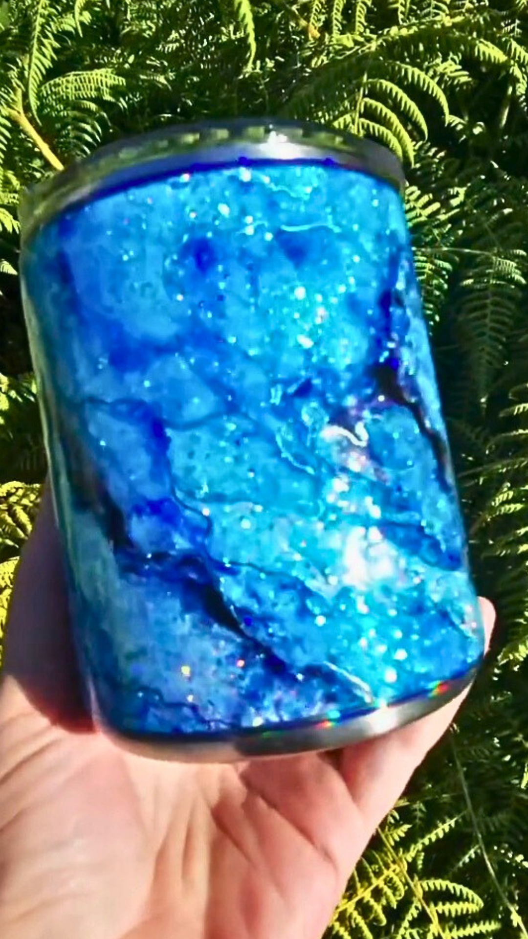 From my Twisted Ink collection, this design transforms a sparkling glitter base into a dreamy, watercolor-inspired work of art. Alcohol inks flow across the surface in soft, organic blends, detailed with shimmering foils and glitters for luminous depth. Each tumbler is painted entirely by hand, ensuring that no two are ever alike.