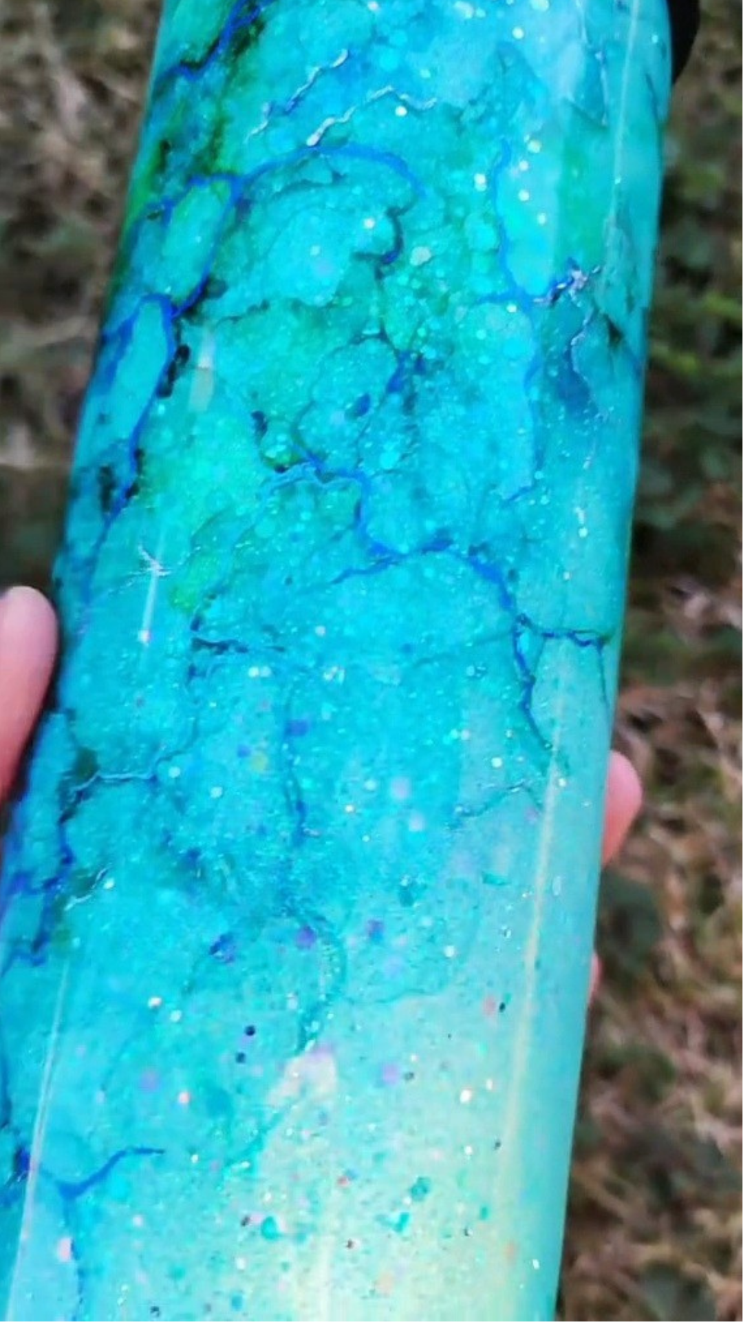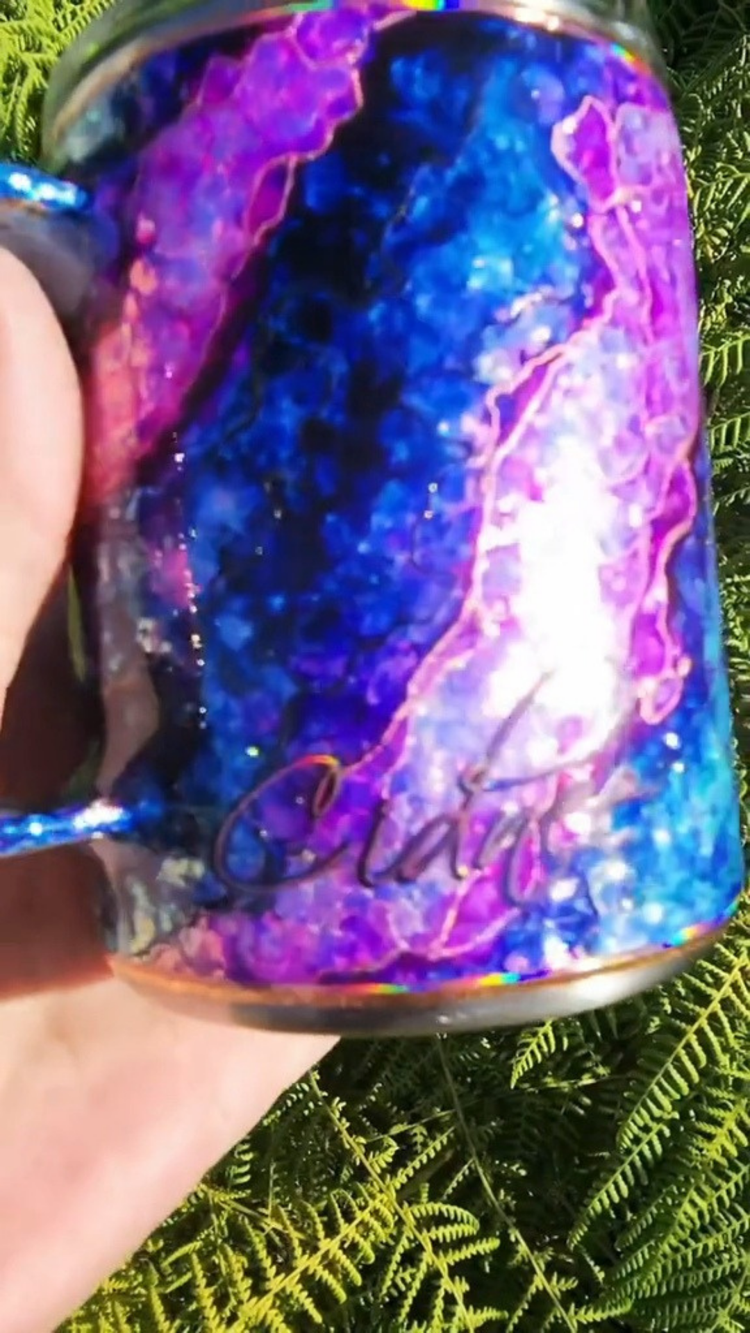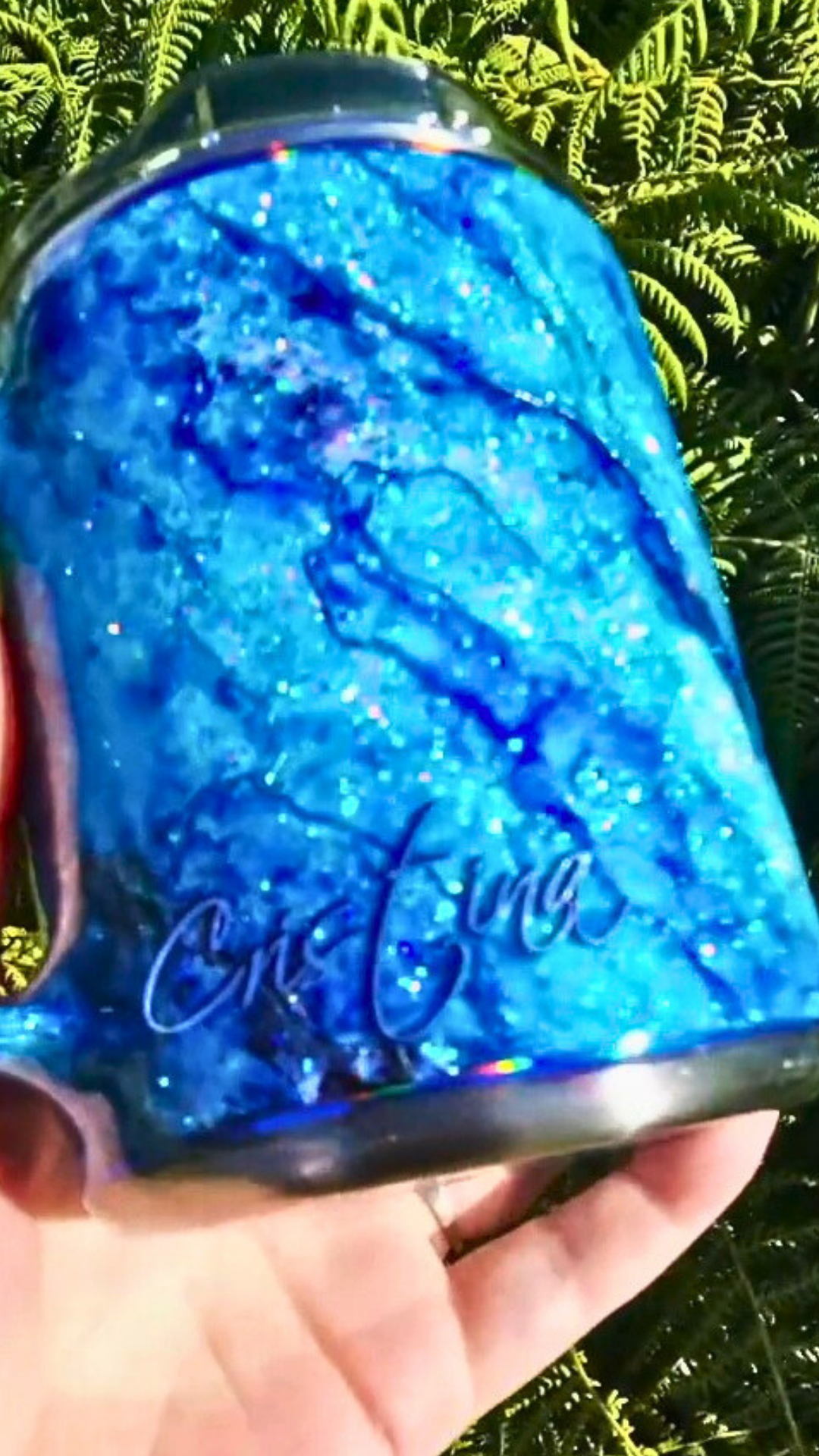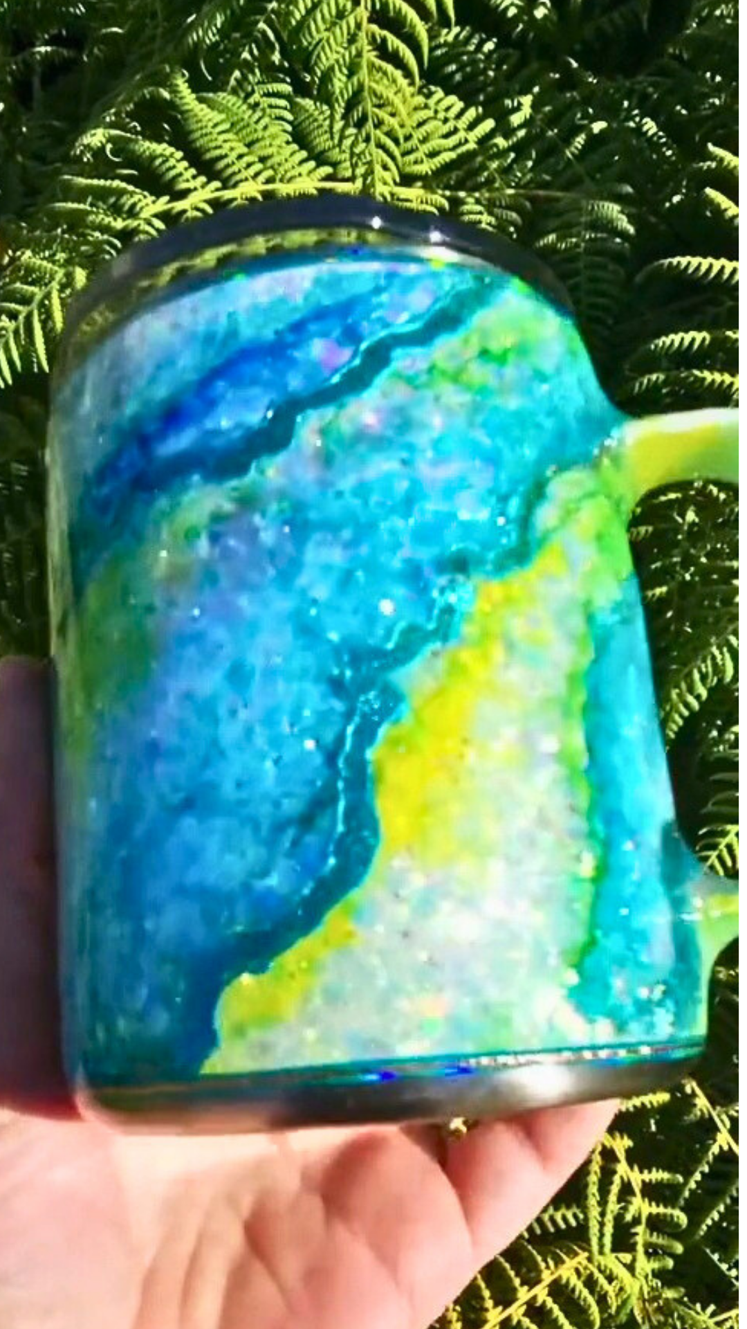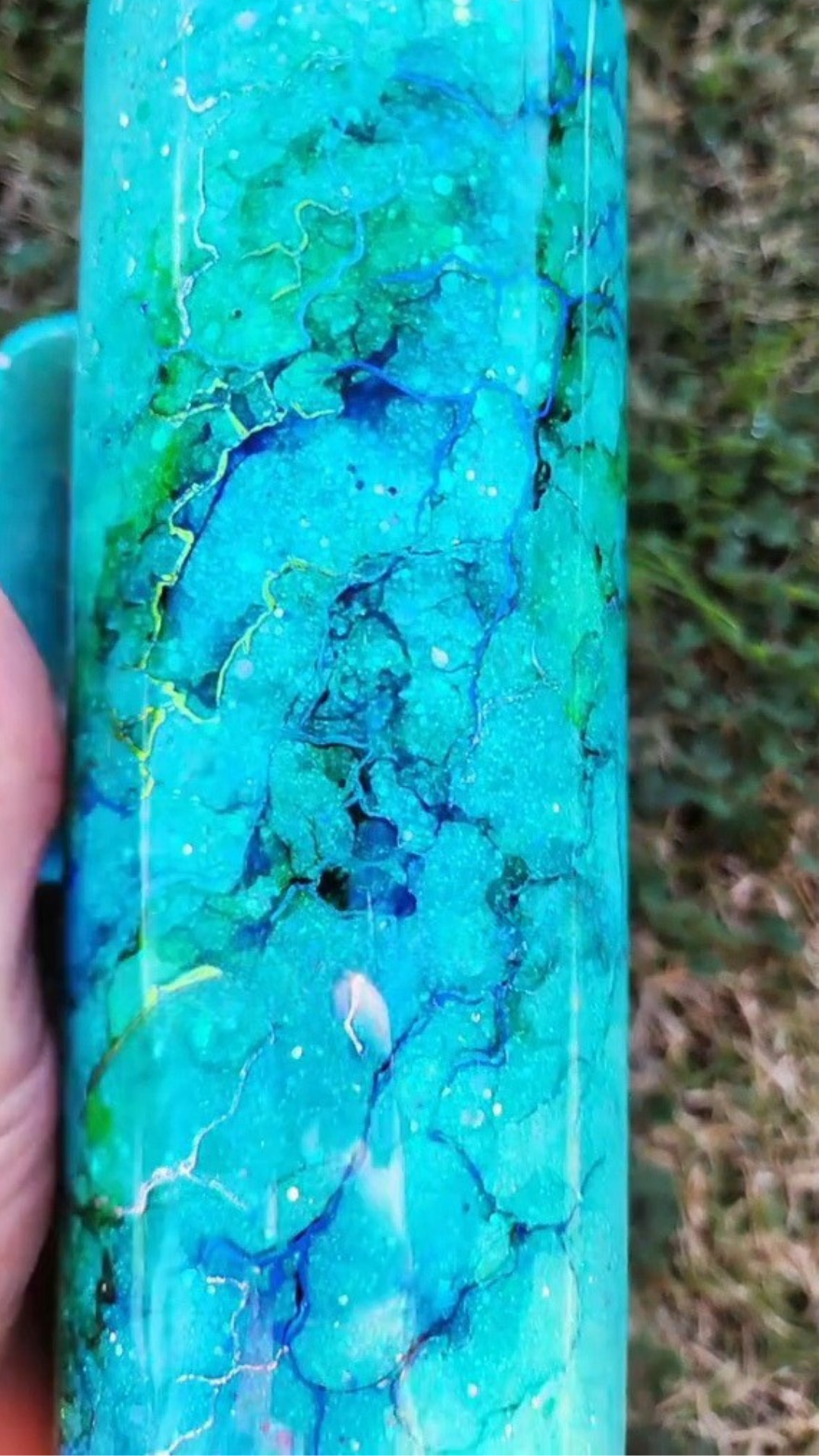From my Twisted Ink collection, this design transforms a sparkling glitter base into a dreamy, watercolor-inspired work of art. Alcohol inks flow across the surface in soft, organic blends, detailed with shimmering foils and glitters for luminous depth. Each tumbler is painted entirely by hand, ensuring that no two are ever alike.