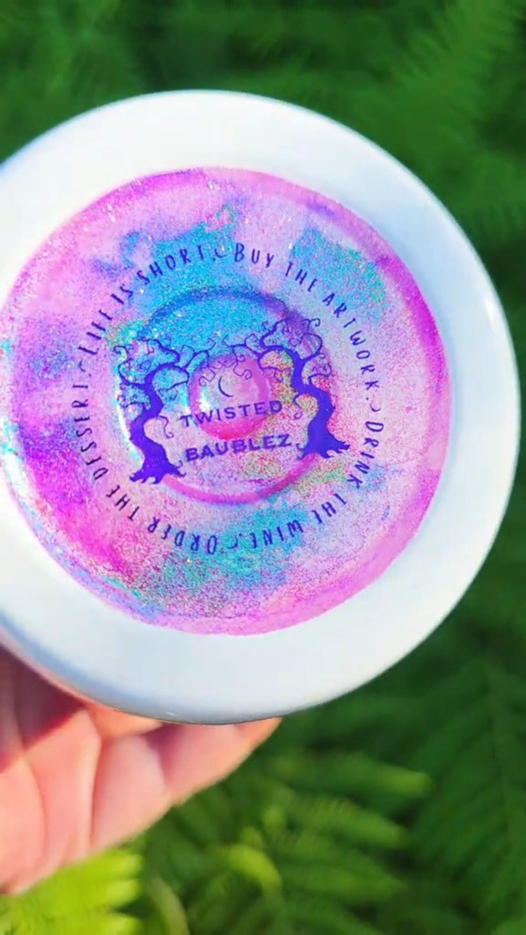 From my Twisted Ink collection, this design combines rustic charm with sparkling elegance. A glitter base in the color of your choice sets the stage, then layers of hand-painted woodgrain are applied on top. Carefully distressed sections reveal the glitter beneath—creating a striking “peekaboo” effect that shimmers with every angle. Whether you prefer a natural wood finish or something bold and unexpected, each tumbler is a one-of-a-kind statement piece.